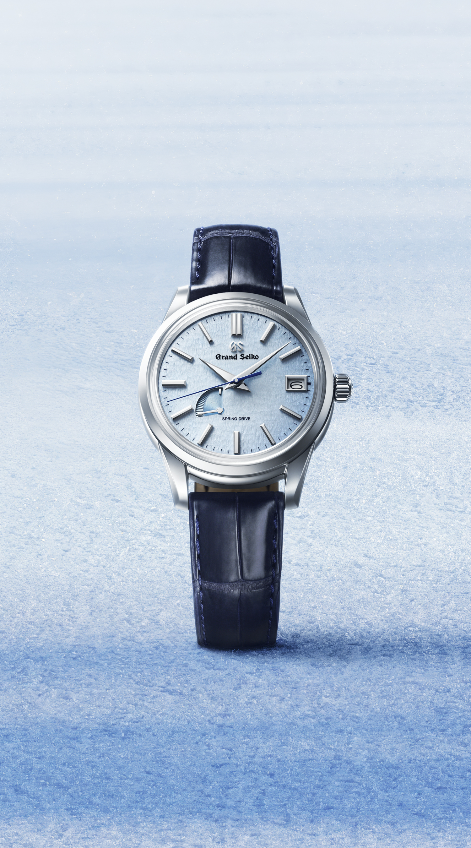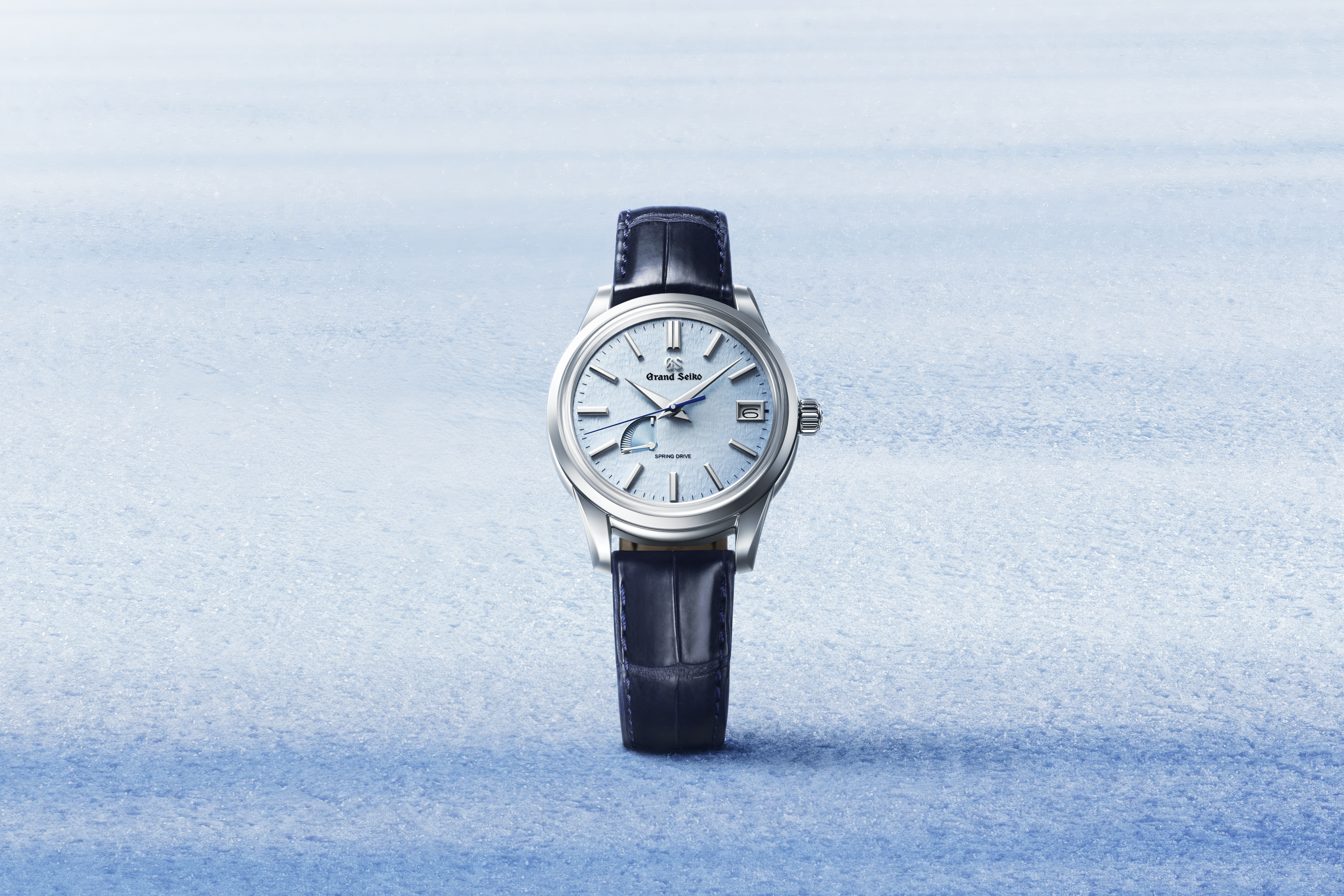 The unique dial pattern is inspired by the wind-swept snow in the mountains of Shinshu. This texture is commonly known as the "Snowflake" and has gained popularity from around the world. To emphasize the delicate dial, it is treated with a subtle blue coloring.
